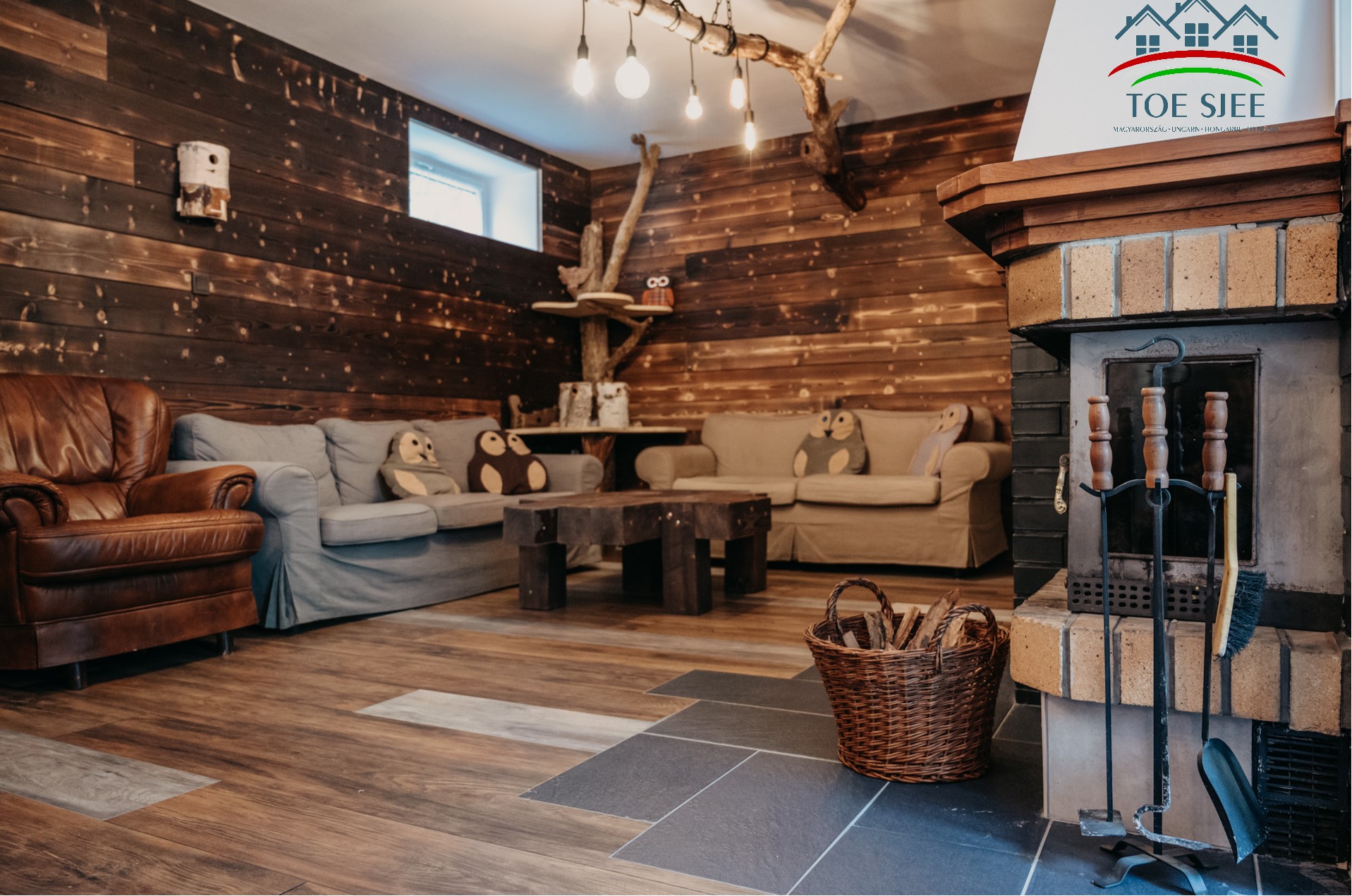 • Közös helyiség: 63 m2-es tér beépített kandallóval